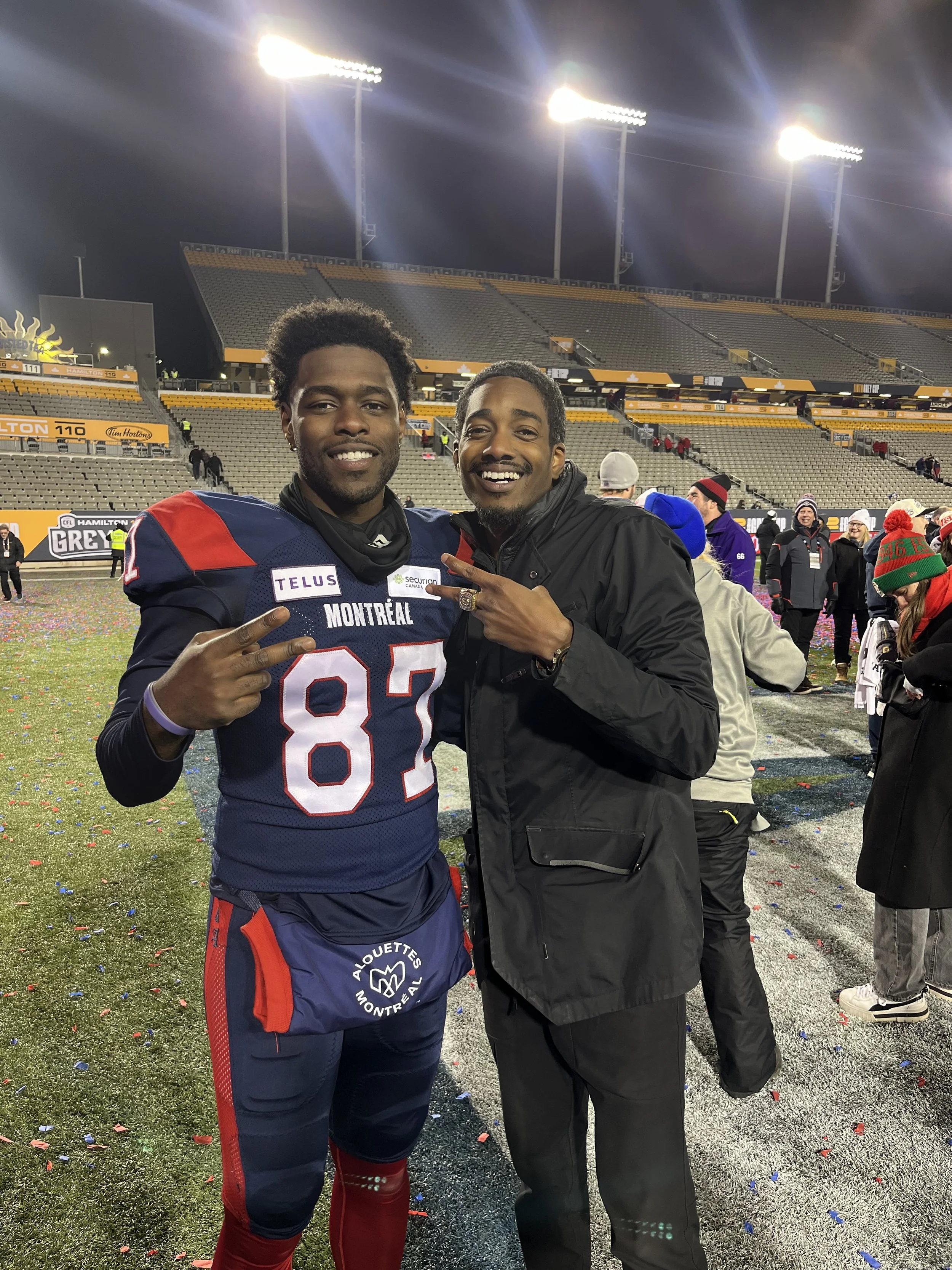 One memory that definitely sticks is meeting up with Jayevan During the Grey Cup Ceremony. I was with my family and teammates celebrating and I remember Jayeven running up to me and yelling “Man, I can’t believe they doubted us! You didn’t play last season, didn’t get a CFL Combine Invite, still got drafted, and now you're a GREY CUP CHAMP!”. It was amazing to look back to see how far I’ve come and how amazing this year has been.